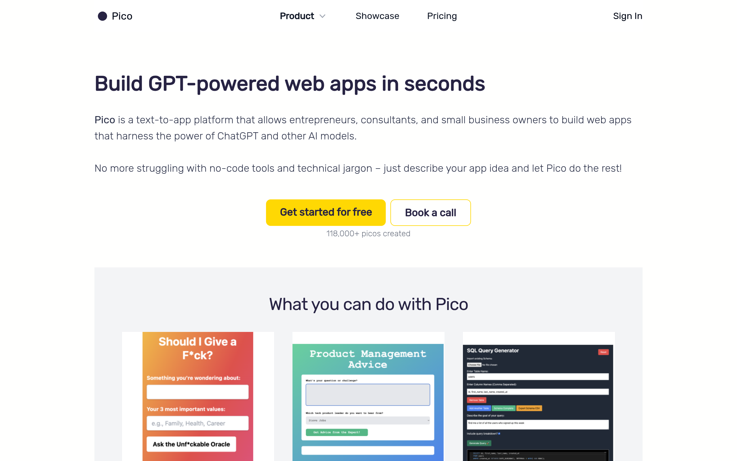 - Instant Hosting: Apps go live immediately on a .picoapp.xyz subdomain. Custom domains require a paid Starter plan.