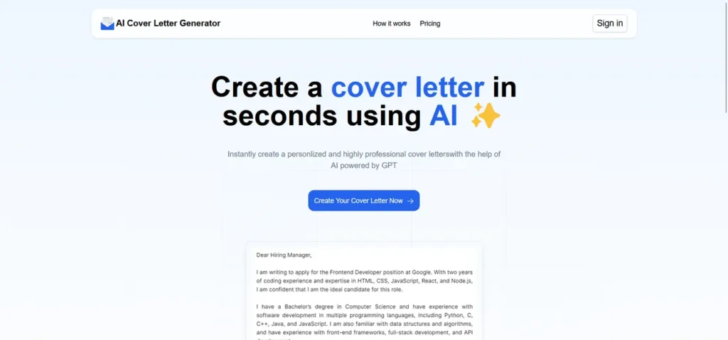 - High-Level Customization: By analyzing specific job descriptions and user qualifications, the AI generates content that is highly targeted, increasing the likelihood of capturing the recipient’s attention.