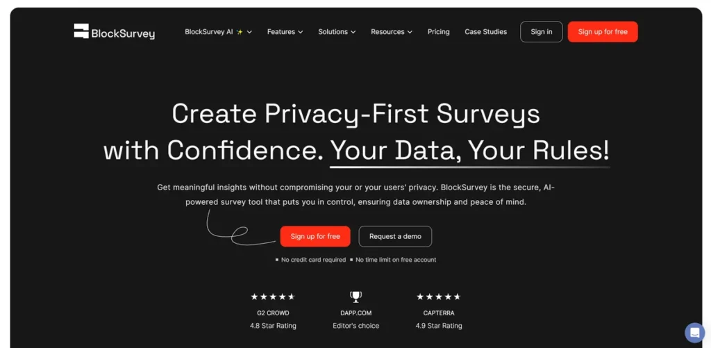 Explore Block Survey, the AI-driven survey tool prioritizing data sovereignty with end-to-end encryption, scalable APIs, and Web3 token-gated access.