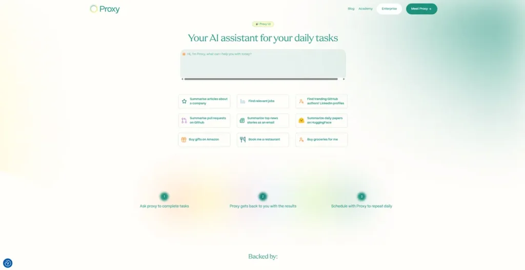 - Autonomous Web Interaction: Proxy can navigate websites, log into accounts, fill out forms, and extract data on its own. It’s built to handle the multi-step processes that often derail simpler automation tools, making it a more robust solution for real-world business needs.