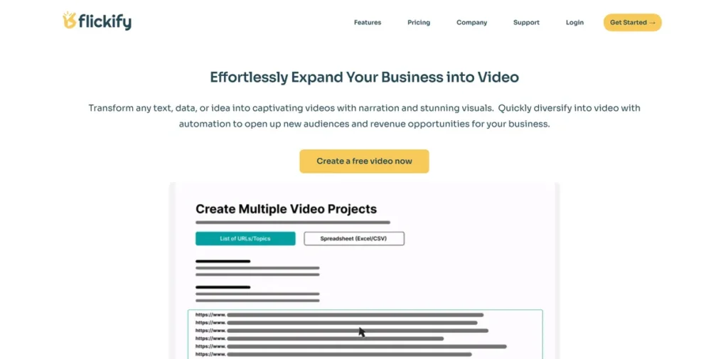 Flickify offers a streamlined text-to-video conversion engine, transforming articles and URLs into engaging video content with impressive speed and scalability.