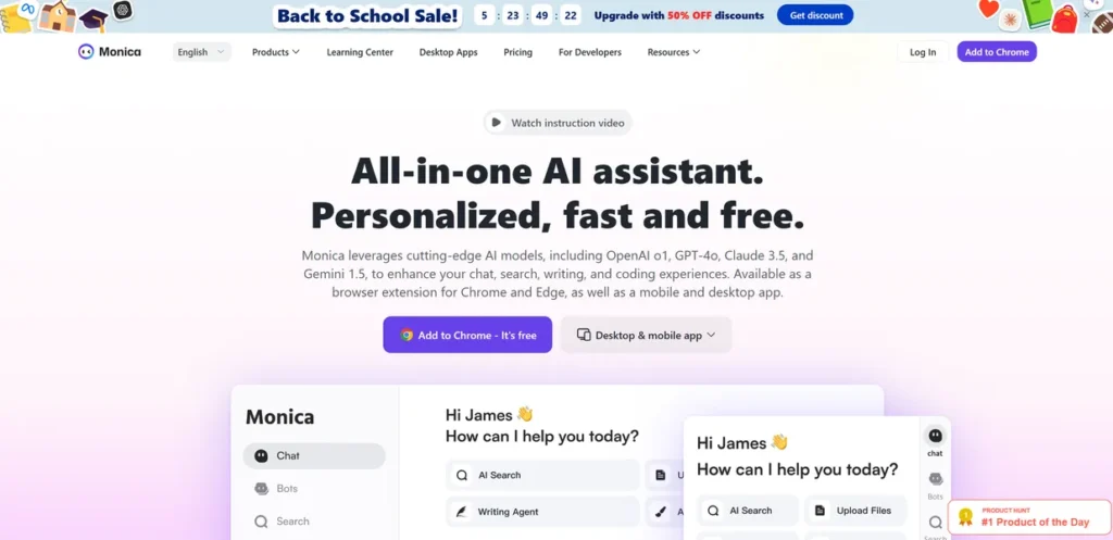 Monica is an all-in-one AI assistant that serves as a sophisticated abstraction layer over the industry’s most powerful language models, including GPT-4o, Claude 3.5, and Gemini 1.5. From a technical standpoint, it’s not just another AI chatbot; it’s an integrated productivity hub designed to inject AI capabilities directly into a professional’s workflow. Available as a browser extension, desktop application, and mobile app, Monica aims to centralize AI interaction, eliminating the need to juggle multiple subscriptions and interfaces for tasks ranging from code generation and debugging to document analysis and content creation.
