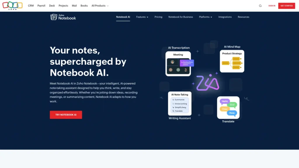 - Yes, as a Zoho product, Notebook AI is designed to work within the broader Zoho ecosystem and can be part of the Zoho One bundle, offering deeper integration with other Zoho apps like CRM and Projects.