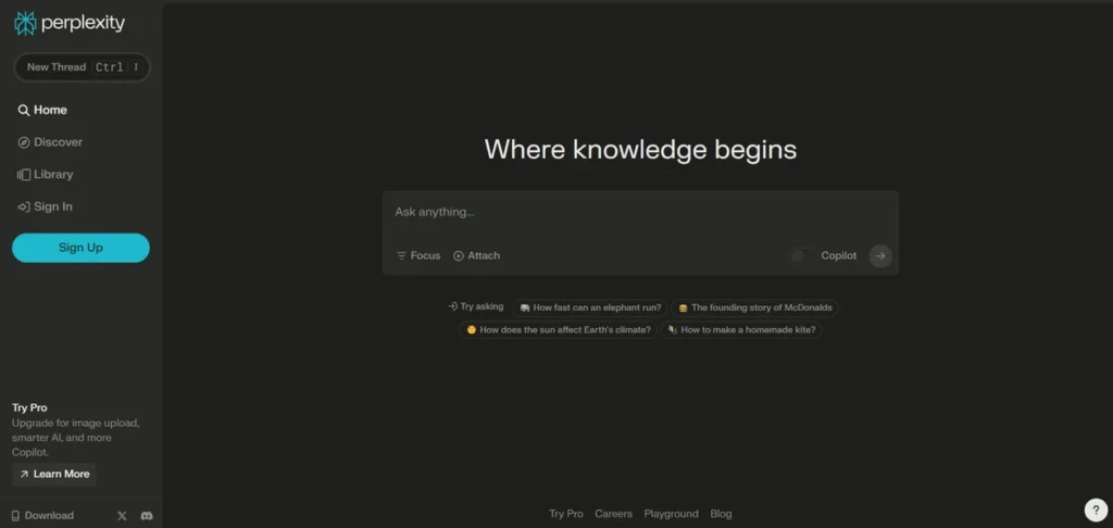 - Free Plan: This plan includes a generous number of searches and five Copilot uses every four hours. It’s an excellent option for individuals or small teams with moderate research needs to evaluate the core product.