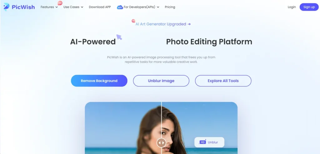 In the fast-paced world of digital marketing, speed and quality are non-negotiable. PicWish is an AI-driven image processing platform engineered to streamline the creation of visual assets, eliminating repetitive tasks that bottleneck campaign launches. For marketing managers, this isn’t just another photo editor; it’s a productivity engine. It provides a comprehensive suite of tools that allows your team to handle everything from background removal for e-commerce listings to generating unique AI art for social media, all without the steep learning curve of traditional design software. It empowers marketers to produce professional-grade visuals quickly, ensuring your content pipeline remains robust and agile.