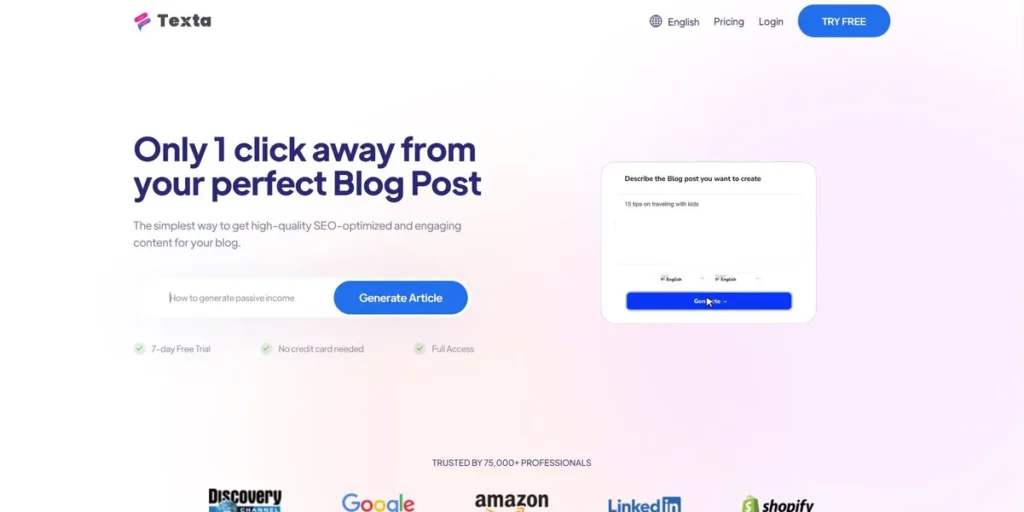 From a developer's perspective, Texta is more than a writing tool; it's a scalable content engine. This review analyzes its API, integration potential, and performance.