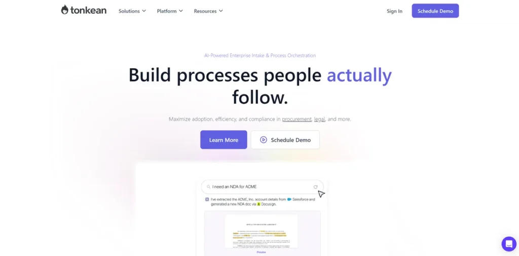 • Intelligent Orchestration: Tonkean goes beyond simple automation by coordinating actions across multiple people and systems. It can automatically assign tasks, escalate overdue approvals, and ensure every step in a product launch or campaign is executed in the correct sequence.